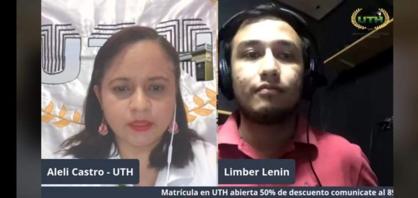 Alelí Castro y el emprendedor Limber Lenín en el lanzamiento de la plataforma en un Live de Facebook UTH.