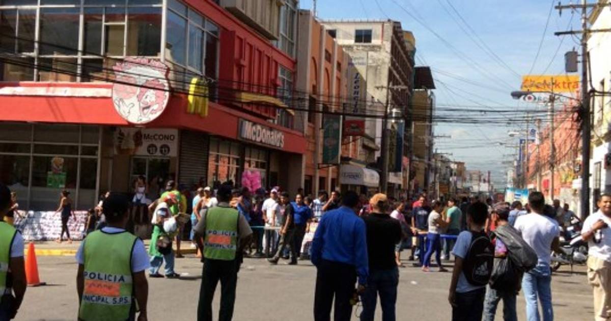 Decenas de vendedores ambulantes mantienen tomada la tercera avenida de San Pedro Sula, en protesta porque la Municipalidad les despejó de las vías.