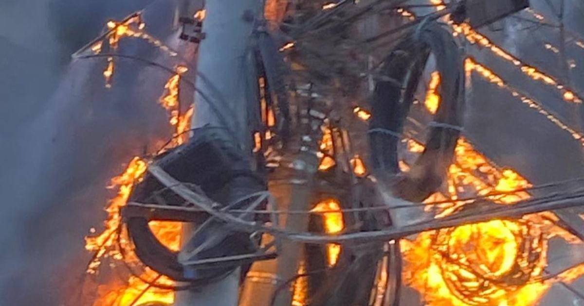 En las imágenes se ve cuando en término de segundos los cables se incendian. Por fortuna, elementos del cuerpo de bomberos llegaron para sofocar el fuego y así evitar que los daños aumentaran.