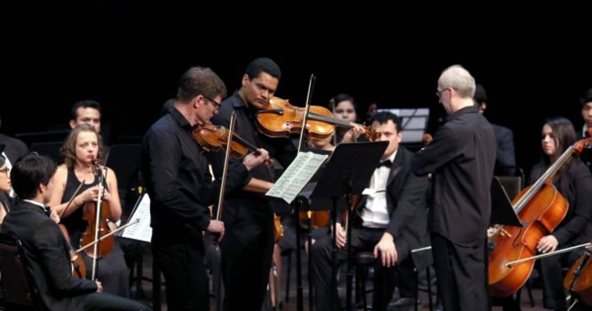 Para dirigir Introducción y Rondo Caprichosso, de Saint Saens, pasó al escenario el hondureño Óscar Barahona al frente de la orquesta con más de 50 músicos de América.