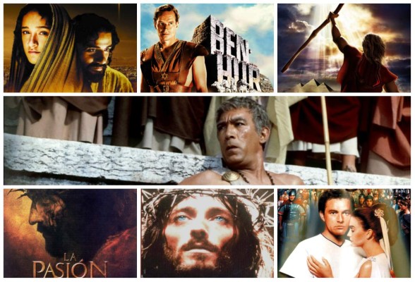 Cintas como La Pasión de Cristo, Jesús de Nazareth, Los diez mandamientos y La túnica sagrada fueron basadas en historias de la Biblia. Algunas de ellas han recibido muchos premios Óscar, como Ben-Hur, de 1959, protagonizada por Charlton Heston. Fue la primera película en la historia que recibió 11 premios de la Academia.
