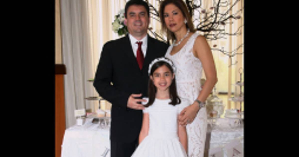 Angélica y Beno Micheletti llegaron llenos de regocijo hasta el templo María Reina del Mundo para celebrar la primera comunión de su hija Isabella.