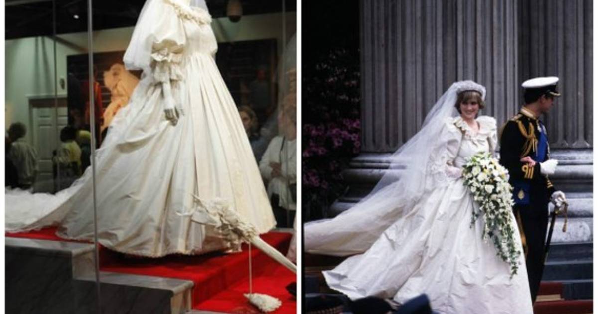 El vestido de encaje de seda y tafetán, creado por David y Elizabeth Emanuel, cuenta con un 25 pies y 10mil perlas. En su día, era tan famoso como el vestido que Alexander McQueen le diseño a Kate Middleton para su boda con el príncipe William en 2011.