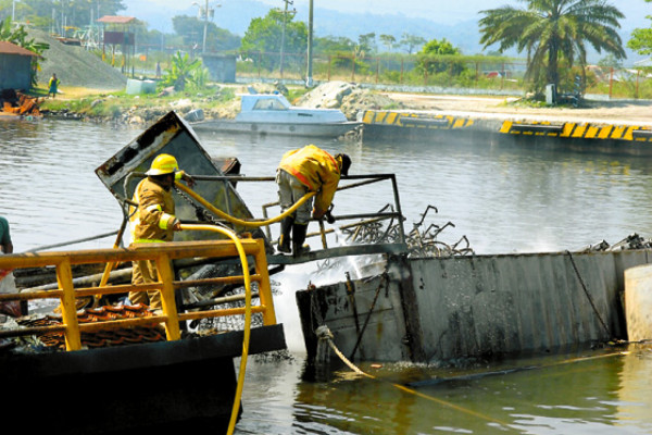 “Lo que más nos preocupaba era el derrame de combustible en la laguna, por lo que no se podía operar el puerto hasta que se limpiara la zona y así evitar cualquier accidente”, dijo Roberto Stanley, del Cuerpo de Bomberos.