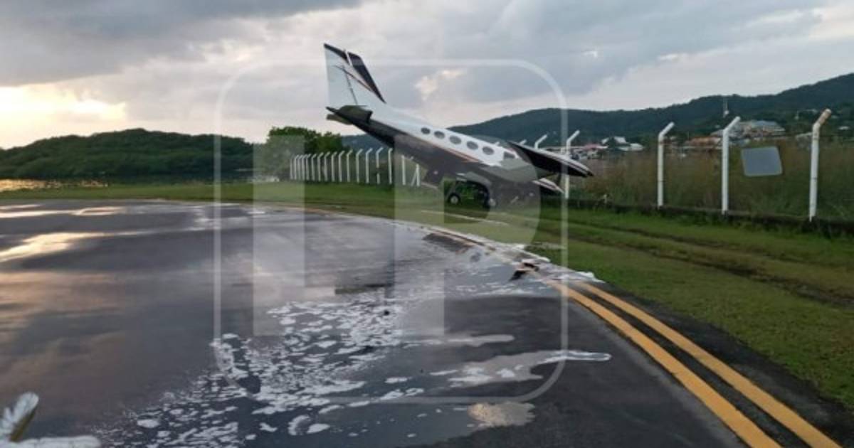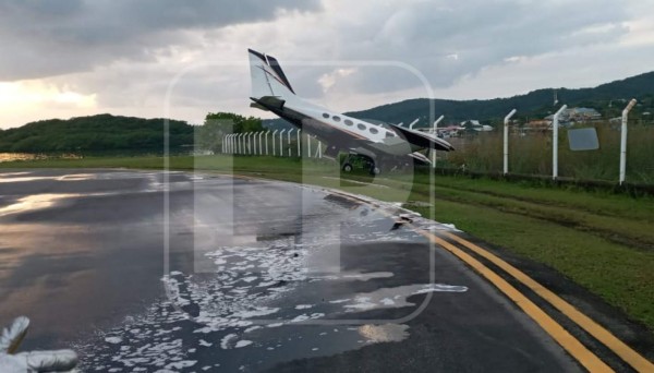 Un avión privado se salió de la pista en el aeropuerto Juan Manuel Gálvez de la isla de Roatán, Islas de la Bahía.