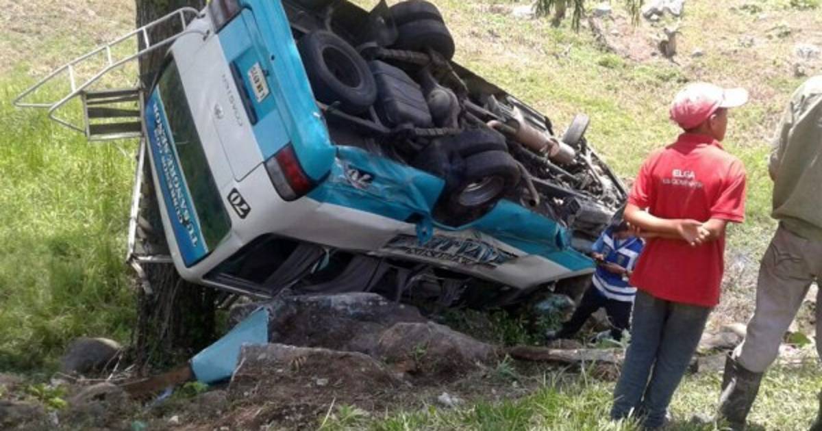 El Cuerpo de Bomberos atendió el accidente e informaron el bus interurbano accidentado pertenece a la empresa Expresos Maya Lenca.