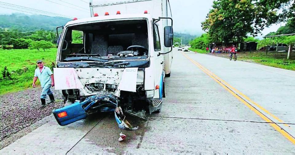Dos hombres perdieron la vida luego que la motocicleta en la que se conducían impactó contra un camión en la carretera internacional CA-4.