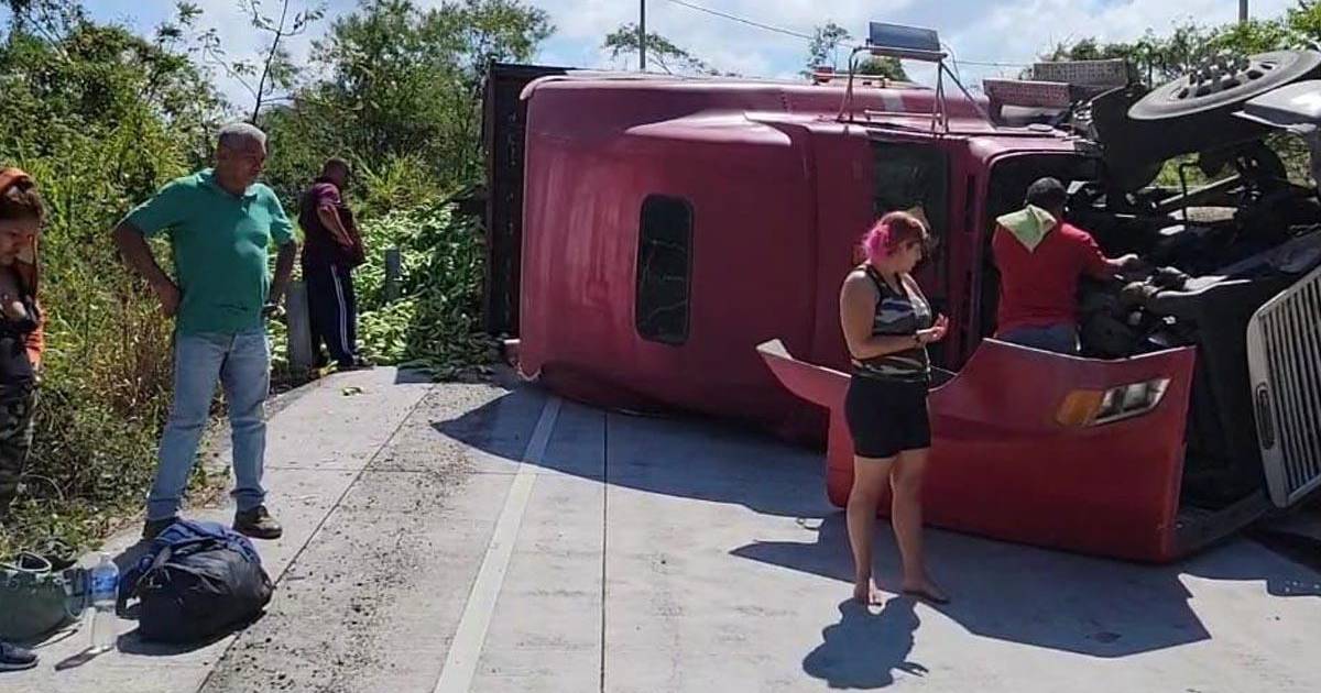 Tres personas que iban a bordo de una rastra cargada de bananos verdes sufrieron lesiones este jueves luego que se volcara en Copán, en el occidente de Honduras.