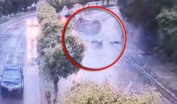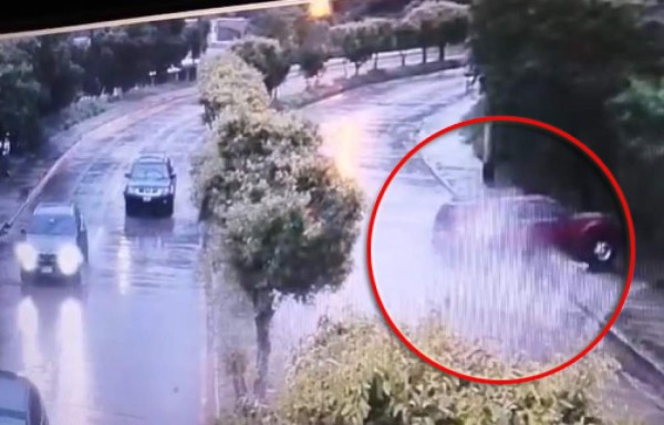 Las cámaras del Sistema Nacional de Emergencias 911 captaron el momento en que una camioneta se estrella en el bulevar Kuwait de Tegucigalpa.