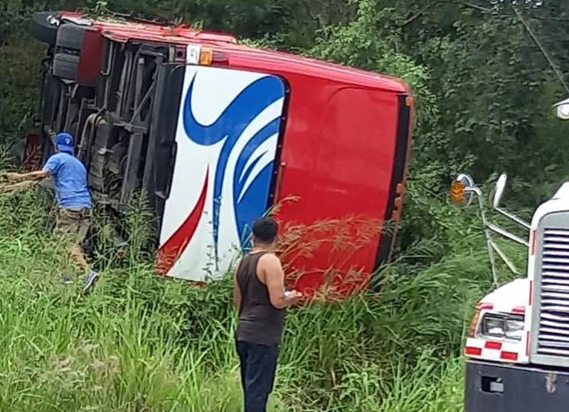 Más de 20 del total de los ocupantes quedaron atrapados al interior de la unidad de transporte público que terminó cayendo a una hondonada. El autobús se conducía con unas 65 personas desde la capital hasta Choluteca.
