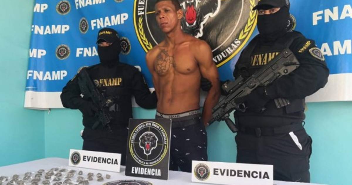 Agentes de la Fuerza Nacional Antimaras y Pandillas (FNAMP) capturaron este martes en La Ceiba a un supuesto vendedor de droga.