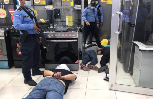Cuatro supuestos asaltantes fueron detenidos este sábado cuando intentaban asaltar una agencia bancaria y tienda de electrodomésticos en El Progreso, Yoro.