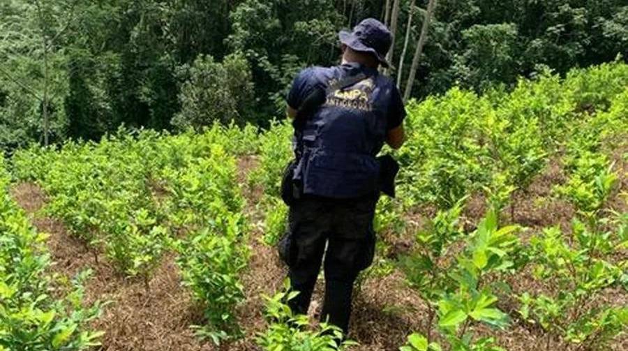 La Policía Nacional, ubicó este sábado un terreno de 45 manzanas en el cual se estaba cultivado con arbustos de hoja de coca en la aldea Nueva Libertad, Patuca, Olancho.