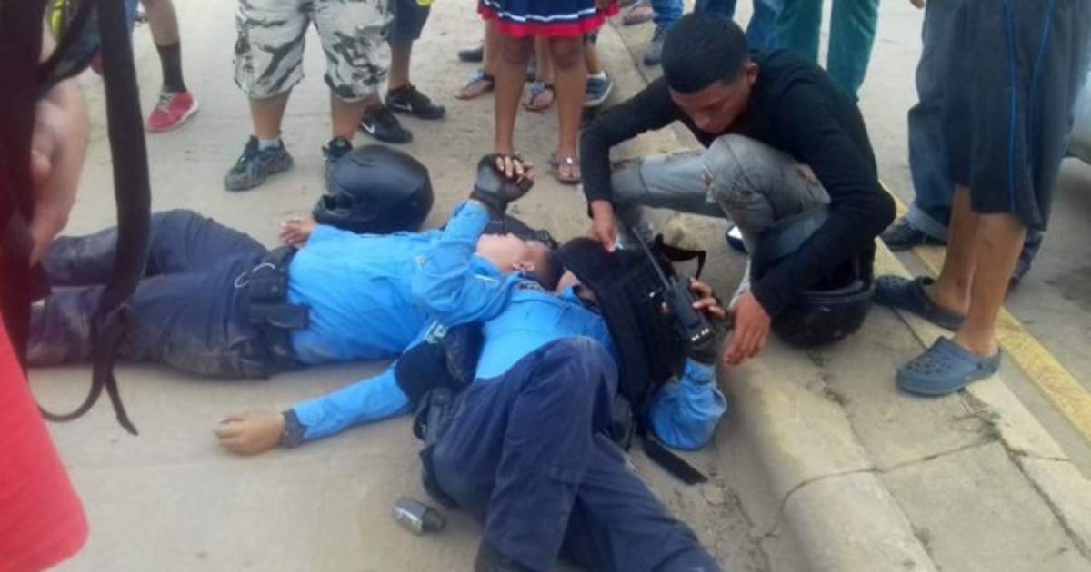 Momento en que los policías estaban siendo auxiliados.