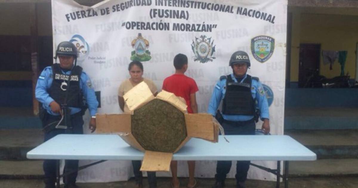 Una madre y su hijo fueron capturados en la mañana de este jueves en el municipio de Tocoa, departamento de Colón, cuando supuestamente transportaban en una caja unas 100 libras de supuesta marihuana.