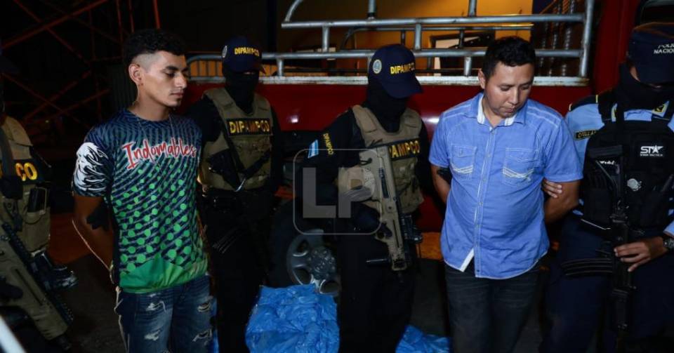 La revisión del vehículo ocurrió a alrededor de las 5:00 p.m. de este lunes. Los detenidos son Franklin Alberto Méndez Alvarado, de 38 años de edad, y Kevin Javier Lara Orellana, de 22.