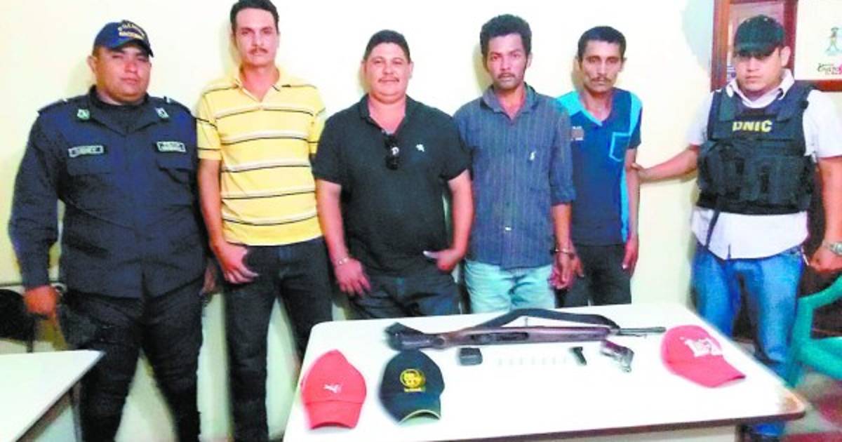 La Policía presentó a los detenidos Job Baltazar Solorzano León (31), Ever Ismael Solórzano Solórzano (32), Santos Manuel Zelaya Solórzano (34) y Elmer Onex Salinas Banegas (edad no especificada).