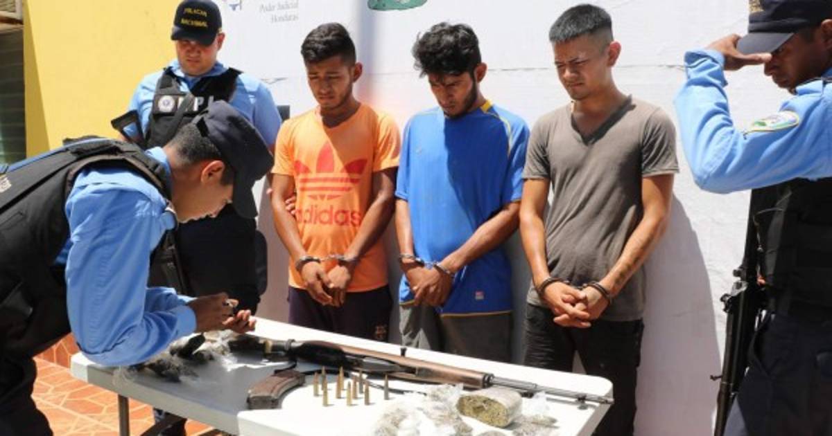 Caen tres supuestos pandilleros con fusil y droga en El Progreso