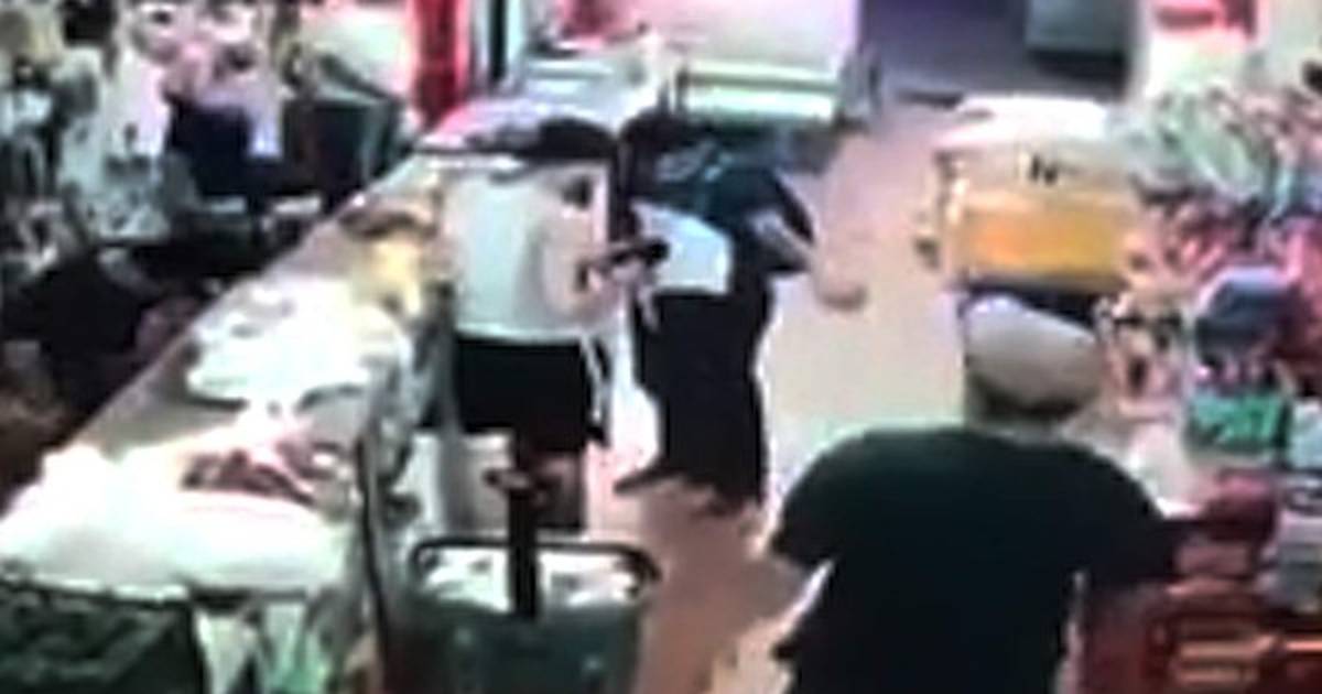 Según las imágenes, al menos dos hombres ingresan al mismo tiempo luego ubicarse con disimulo para vigilar y amenazar a clientes y empleados del local.