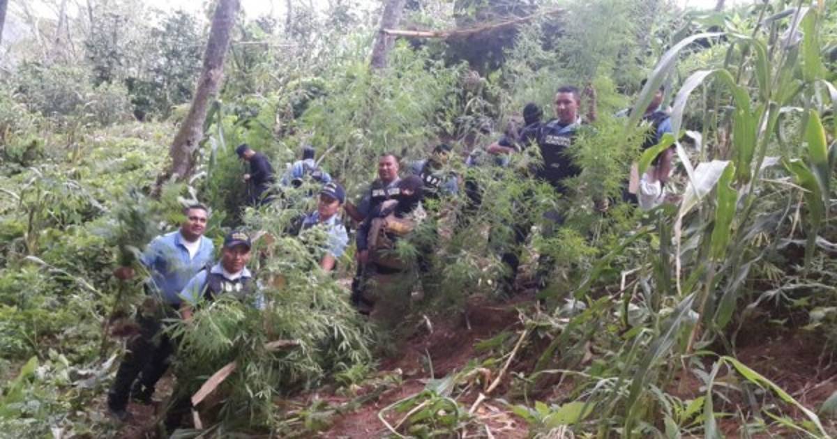 Dos hombres fueron capturados este miércoles en una plantación de supuesta marihuana en la aldea San Antonio de La Libertad de la reserva biológica de Montecillos, Comayagua, zona central de Honduras.
