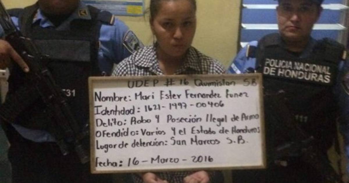 Según testigos, Fernández y dos hombres asaltaron el bus de la ruta Ilama a San Pedro Sula y en una persecución policial se detuvo a la joven de 19 años. Los dos hombres se dieron a la fuga.