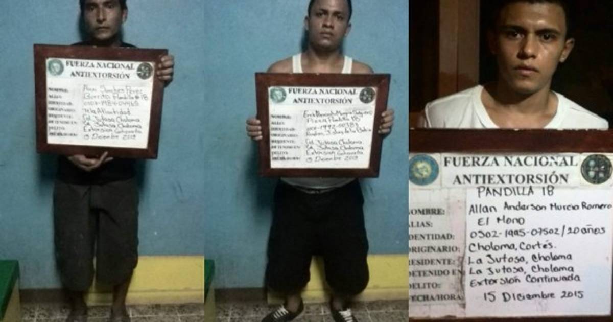 Los detenidos son Erik Alexander Nungui Salguero alias Pizza (23) originario de Roatán Islas de la Bahía; Alexis Sánchez Pérez (31) originario de Tela y Allan Anderson Murcia Romero alias Mono (21). Todos residentes en el municipio de Choloma.