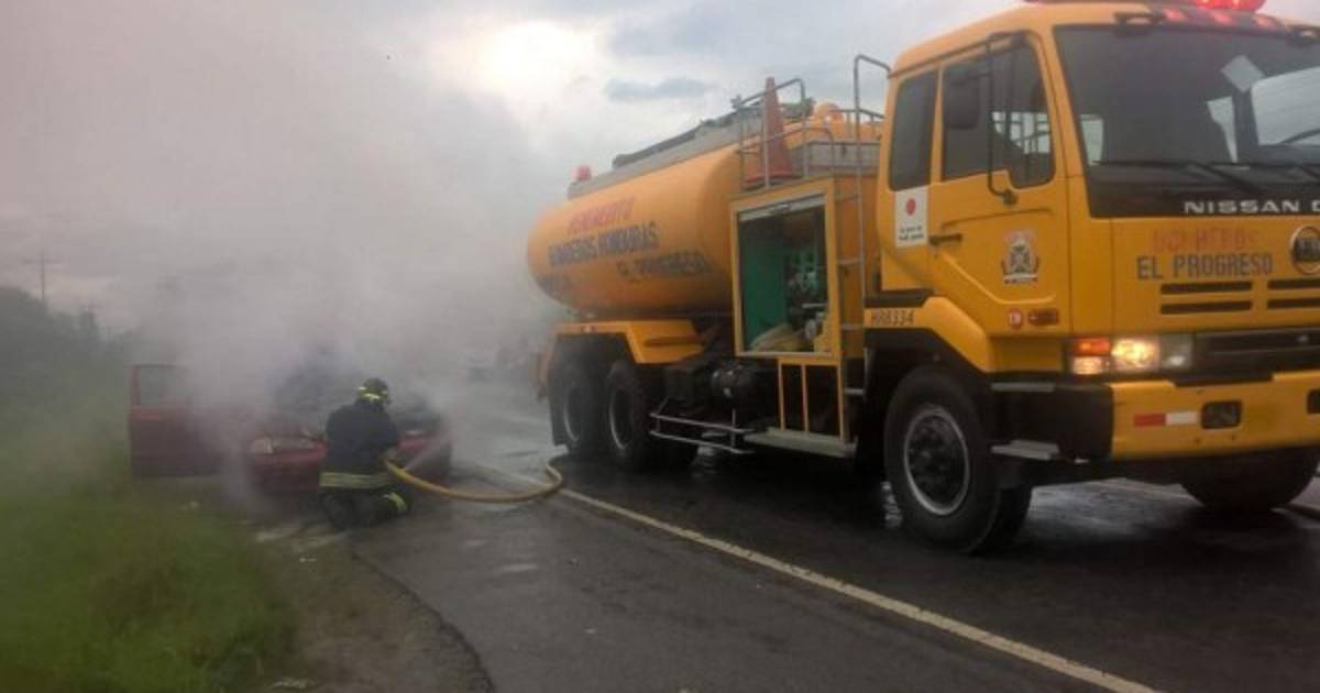 Un vehículo se incendió en la carretera CA-13 de El Progreso, en la zona norte de Honduras.