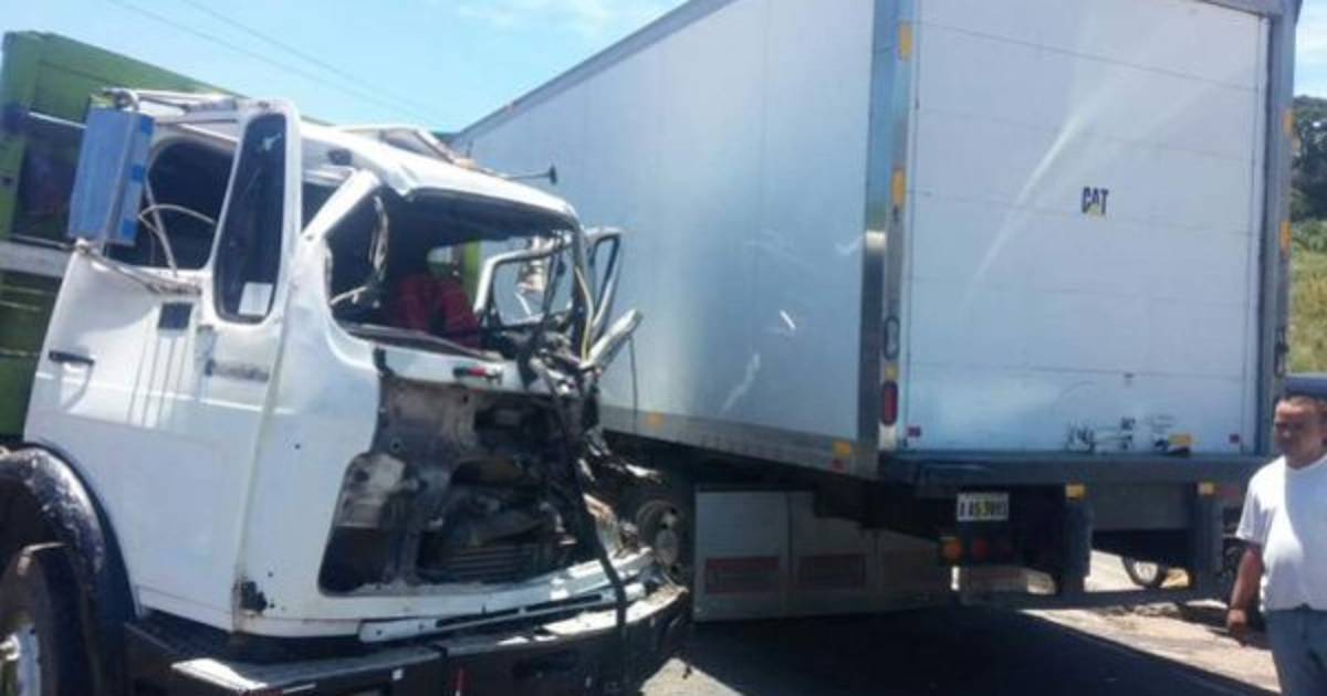 Dos camiones y un taxi colisionaron la mañana de este miércoles en el anillo periférico, sector Suyapa, dejando dos heridos y paralizando el tráfico.