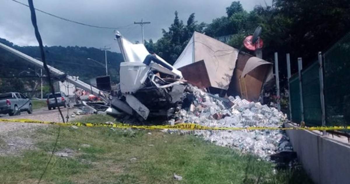 El accidente se produjo cuando un camión cargado de jugos venía bajando una pendiente muy pronunciada en la salida de Tegucigalpa cuando el conductor perdió el control del vehículo pesado, se salió de la vía e invadió el carril contrario impactando contra una camioneta, placa PEE 8116, que circulaba en la zona.