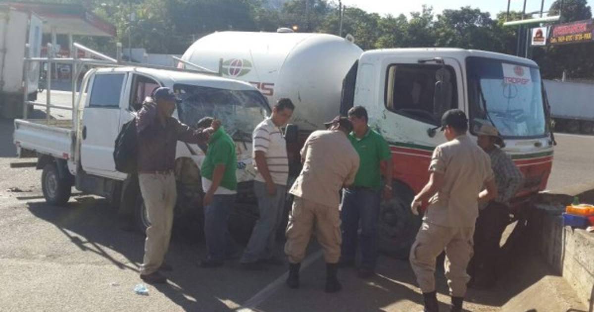 El accidente se produjo cuando un vehículo Kía doble cabina, placa PCC 7290, chocó contra un camión tipo pipa de gas, placa PCR 9075, a eso de las 2:50 de la tarde.