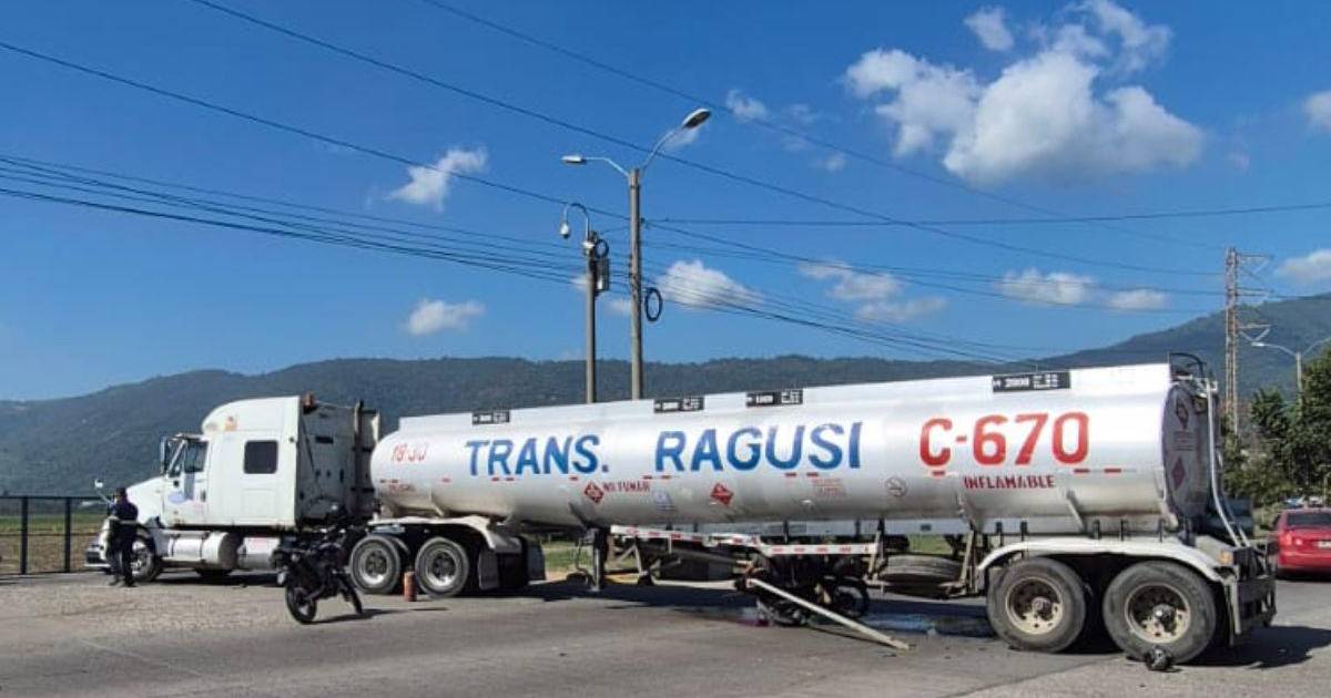 De acuerdo con información preliminar, la víctima colisionó con una rastra cisterna que circulaba por la zona. Tras el impacto, el cuerpo del motociclista quedó atravesado debajo del pesado vehículo.