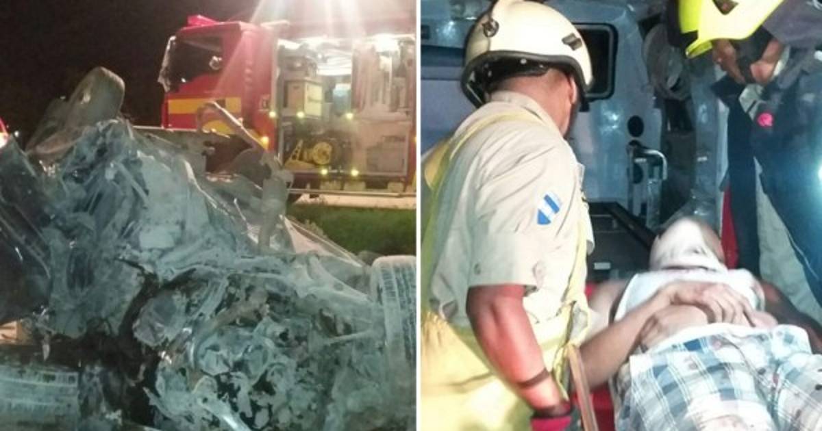 Los socorristas tuvieron que utilizar equipos especiales para rescatar del armazón del vehículo al único sobreviviente del fatal hecho.