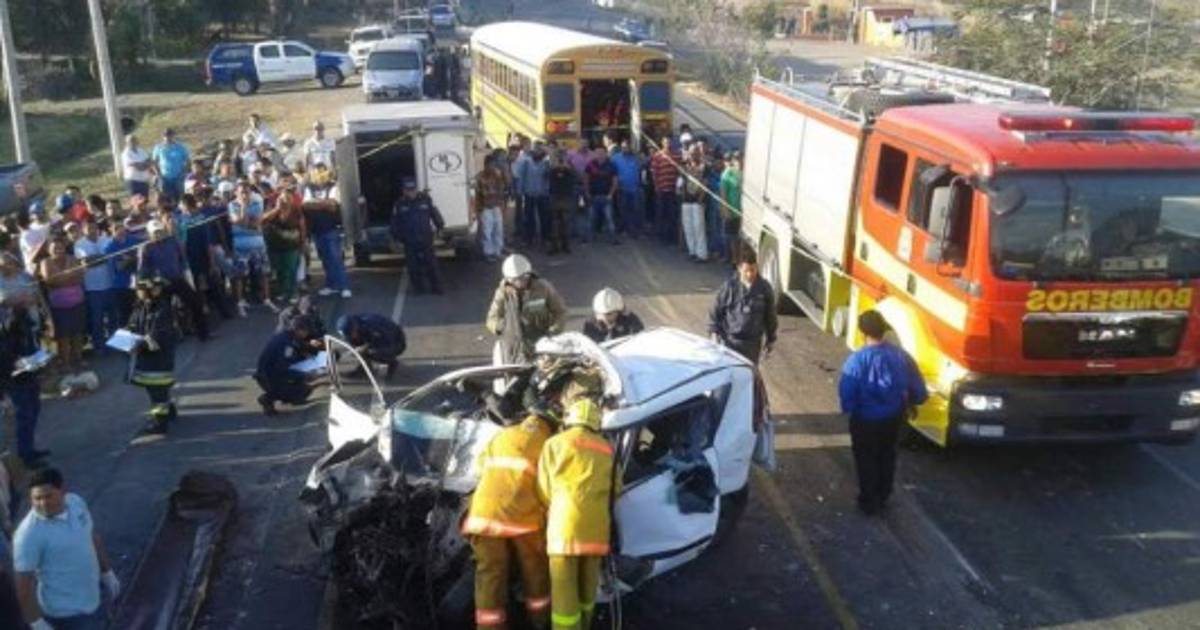Según reporte policial, el accidente se produjo a eso de las 2:00 am en la colonia Santa Isabel y dejó dos personas muertas; otras cinco quedaron atrapadas en el automóvil. Los dos fallecidos son César Armando González Cruz, de 32 años, y Sayda Elizabeth Bueso Flores, de 27.