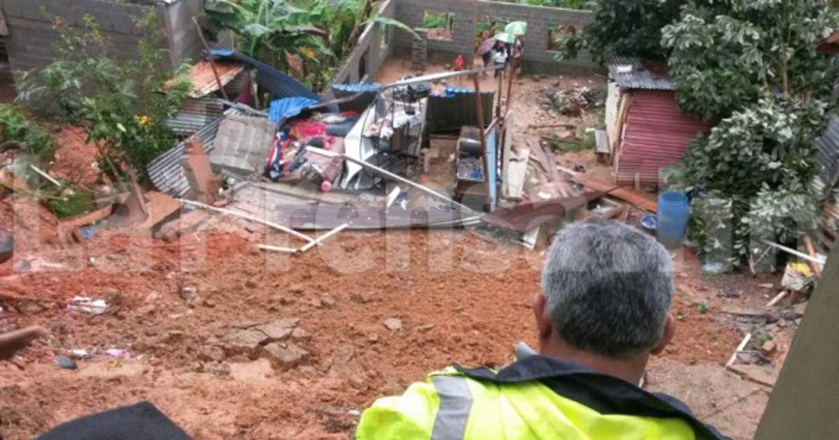 La casa fue aplastada por un derrumbe en la parte alta de la colonia Canales de La Ceiba a eso de la 1:00 de la madrugada de este martes.