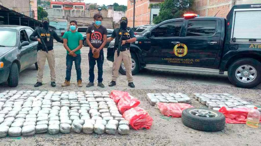 TEGUCIGALPA. Un nuevo golpe a estructuras ligadas al narcotráfico asestó la Fiscalía Especial contra el Crimen Organizado y la Agencia Técnica de Investigación Criminal (Atic) al decomisar 496 paquetes de marihuana y capturar a dos responsables de transportar el alucinógeno en la salida a Olancho.
