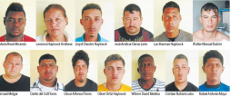 Los detenidos son Arnaúl Melgar Alvarenga, Darlin Flores Cano, César Arturo Flores, Oliver Ortiz, Wilmer Medina Starhar, Cristian Lobo Sarmiento, Rafael Moya, Mario René Miranda, Leora Hayloock Orellana, Lloyd Chester Hayloock, Leo Hayloock, Walter Manuel Dubón Rodríguez y José Amílcar Deras León.