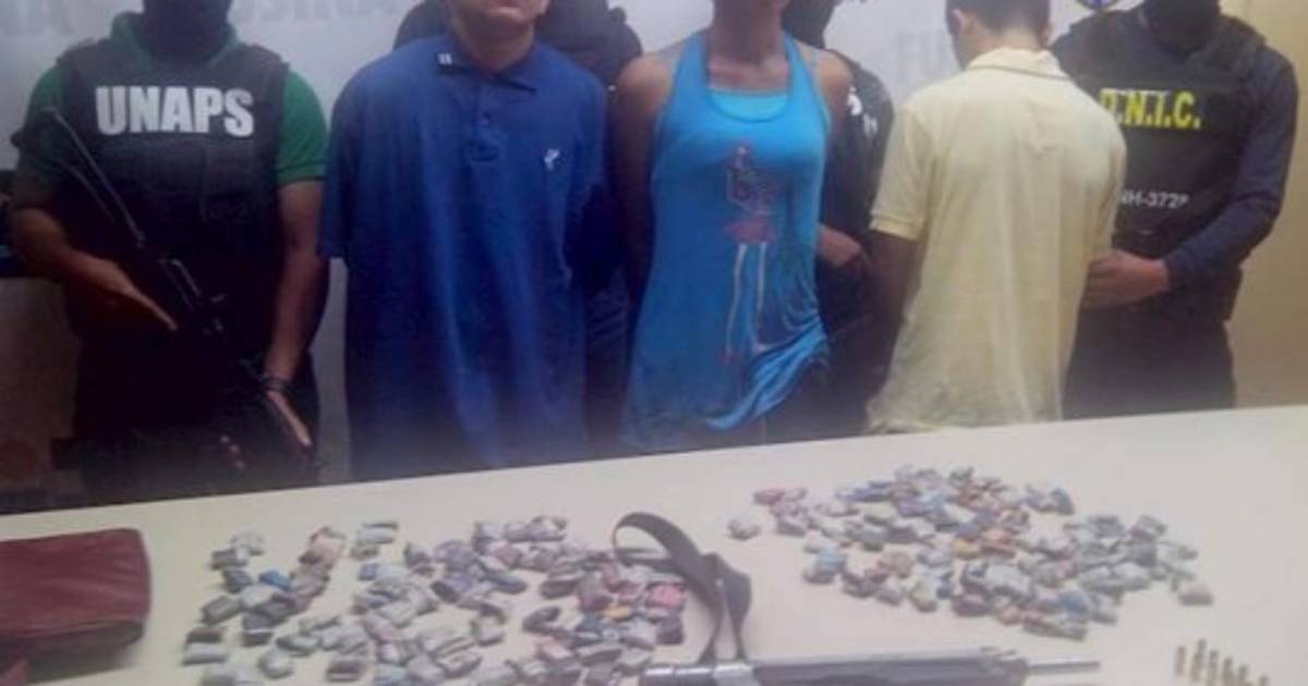 Durante su detención se les decomisó una ametralladora mini Uzi con 10 proyectiles y 195 corrucos de marihuana listos para su venta.