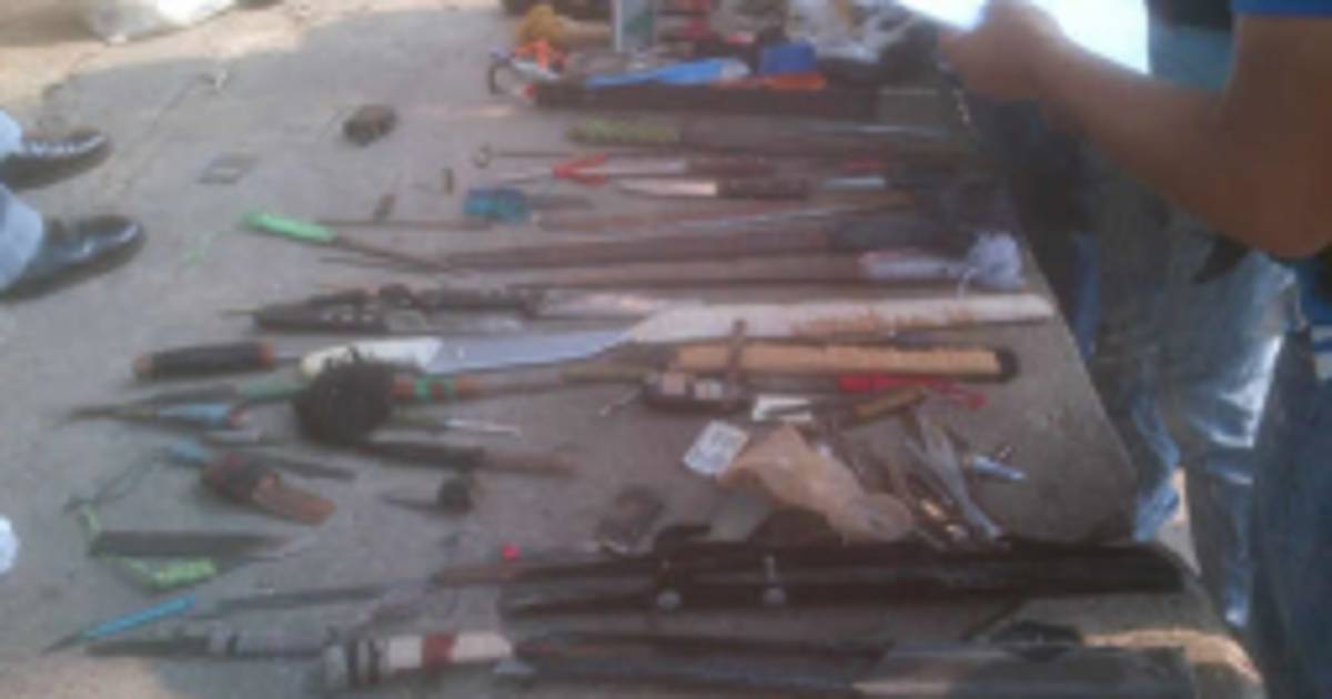 Se logró el decomiso de 14 puntas de supuesta cocaína y cuatro bolsitas conteniendo supuesta droga, cinco celulares, 45 cargadores de celular, 31 armas blancas, una pulidora, un carruco de supuesta marihuana y 21 baterías de teléfonos celulares.