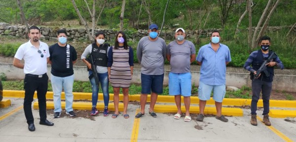 Los detenidos son Emmer Ángel Montoya Jackson (34), Leonel Enrique Arita Ramos (33), Carlos Octavio Bautista Rajo (36), Ernie Dusttin Elwin Poweri (42), Orlyn Oqueli Flores Agurcia (43) y Kella Lizeth Tatun Duarte (28).