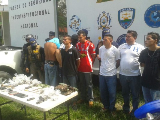 Nueve supuestos miembros de una banda que se dedicaba al sicariato, extorsión y narcomenudeo fueron capturados ayer por elementos de la Fuerza de Seguridad Interinstitucional Nacional (Fusina) en la colonia San Jorge de El Progreso, Yoro.