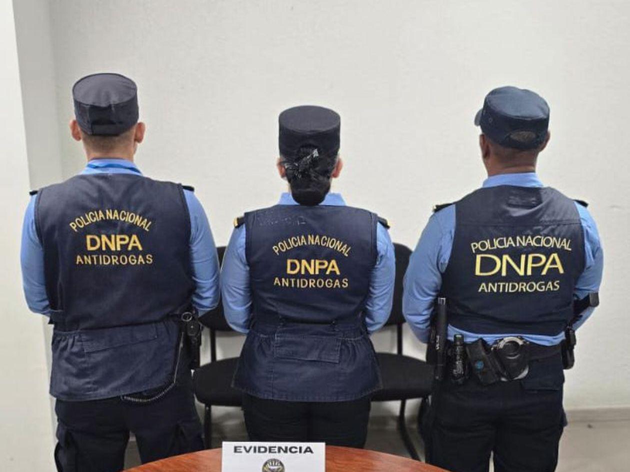 Elementos de la Dirección Nacional Policial Antidrogas (DNPA) incautaron presunta droga que estaba oculta dentro de productos lácteos, durante la inspección realizada en el área de rayos X del Aeropuerto Internacional de Palmerola.