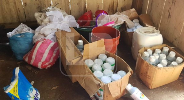Las autoridades policiales informaron que al hacer el allanamiento del lugar encontraron el narcolaboratorio. Los agentes detectaron una plantación de seis manzanas con arbustos de plantas de coca. También hallaron un vivero con 2,500 plantas de coca. En el lugar además encontraron diez kilos de base de supuesta cocaína procesada, una infraestructura para procesar la pasta de coca con todos sus insumos para su elaboración, 20 barriles de químico para procesar la droga.