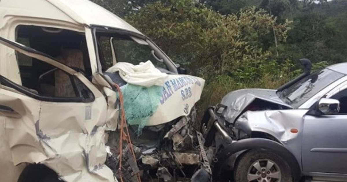 Según datos preliminares, un busito 'rapidito' que cubre la ruta San Marcos, Santa Bárbara - San Pedro Sula, iba rebasando hasta el punto en que primero le pegó en la parte trasera a un vehículo y luego se fue a impactar de frente con otro carro.