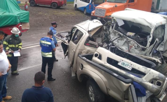 Al menos dos personas fallecieron este jueves en un accidente entre un pick up y un camión frente a la entrada del hotel Casa Lenca en la carretera CA-5, cerca del Lago de Yojoa, departamento de Cortés.