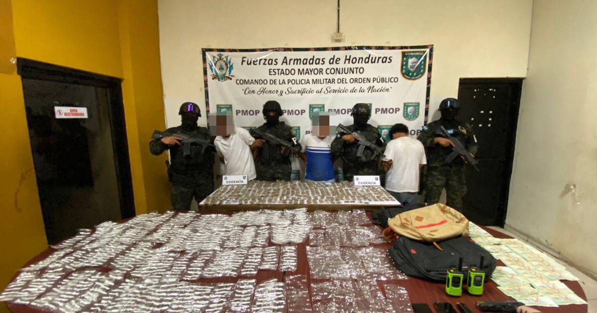 Al momento de la detención se les decomisó 460 bolsas de marihuana, 600 piedras de crack, 910 bolsas de cocaína, 8,200 lempiras en efectivo, 2 radios, 2 mochilas, un arma de fuego, calibre 9 milímetros, munición y 2 celulares.