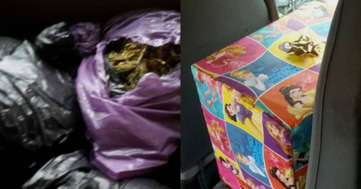 En el interior de la caja decorada con una colorida envoltura de papel, agentes de la Policía Militar encontraron una decena de paquetes más pequeños. El aspecto del “regalo” hizo sospechar a los agentes, que procedieron a abrirlo y para luego incautar su contenido.