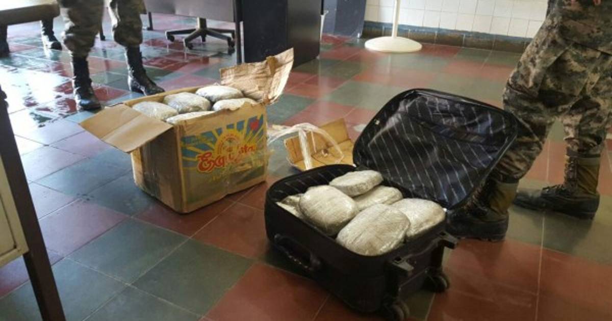 Durante la inspección se encontró la droga oculta dentro de una maleta y una caja de producto casero.