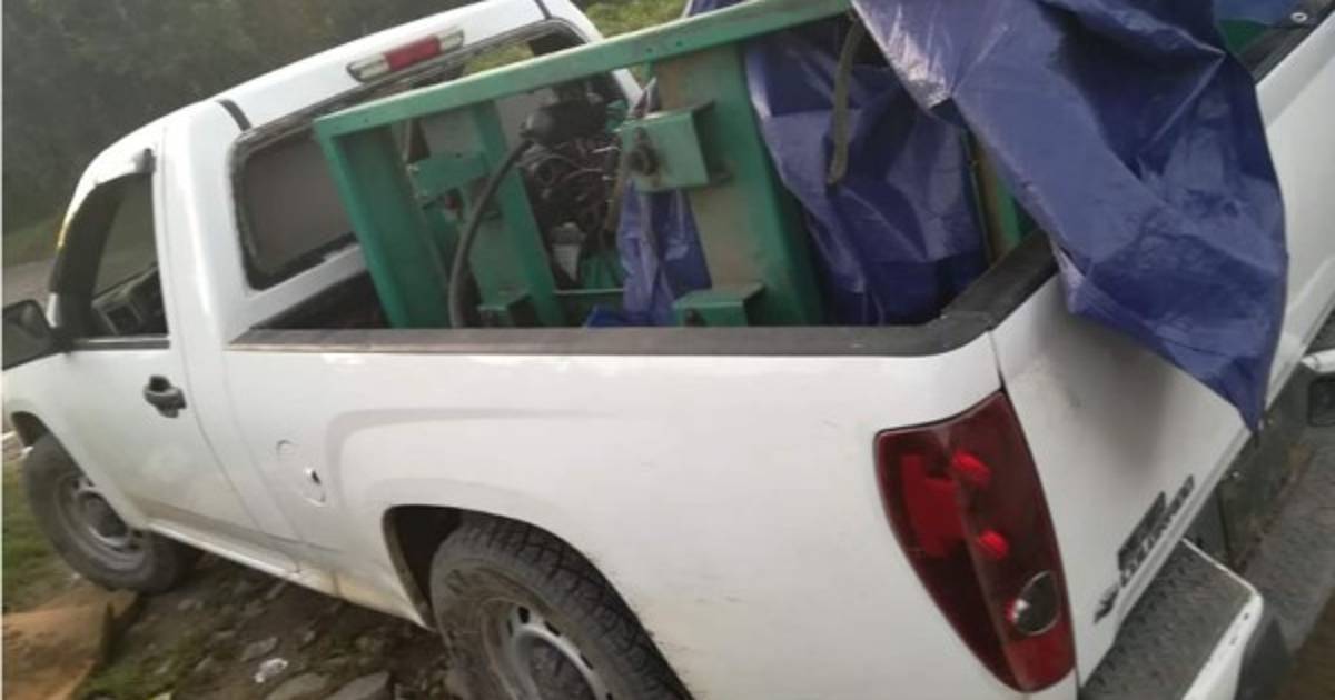 En la escena se incautó un vehículo pickup color blanco marca Chevrolet, con placas, PEE7890 año 2018. Además, se les decomisó un motor aparentemente para el funcionamiento de las antenas de una empresa telefónica.