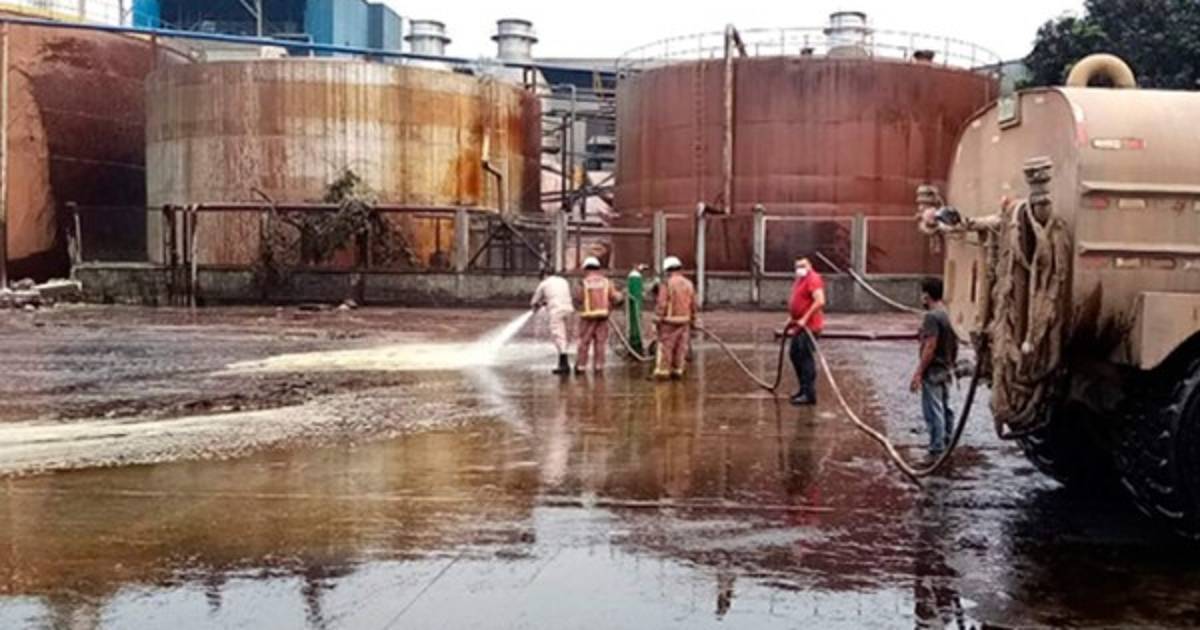 Según información de la compañía, uno de los tanques contenedores de la melaza utilizada para la fabricación de azúcar estalló y provocó un incendio y derrame de dicha sustancia caliente.