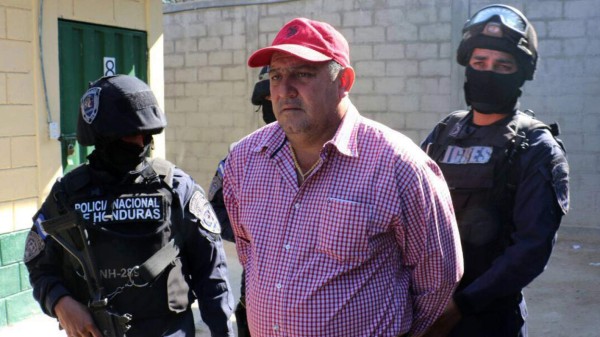 " Carlos Emilio Arita Lara es llevado esposado por oficiales hondureños de la Policía Militar y Nacional.